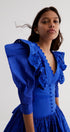 Taraklı Nakışlı Mini Elbise ile görünümünüzü yükseltin. Dekolteli bir yakaya ve zarif fistolu işlemelere sahip bu elbise, sofistike bir dokunuşla romantizmi birleştiriyor. Brode omuz paneli ve organze koyun eti tarzı kollar zarif, havadar bir his katıyor.