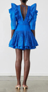 Éloïse Ruffle Derin Yaka Sırtı Açık Mini Elbise