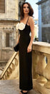 Göz alıcı V yakalı ve çok yönlü spagetti askılı bu zarif maksi elbiseyle gardırobunuzu yükseltin. Narin çiçek aplikesiyle süslenmiş bu ürün, doğal şeklinizi vurgulayan şık bir siluet sunar. Hafifçe esnek polyester kumaş rahat ve güzel bir uyum sağlar.