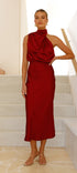 Birinci sınıf etkinlikler ve zarif düğün şenlikleri için mükemmel seçim olan Esther Maxi Elbise ile sofistike bir görünüm sergileyin. Yüksek yaka ve zarif drape detaylarına sahip bu elbise, zarif ve lüks bir görünüm sunuyor. Asimetrik omuz tasarımı çağdaş bir dokunuş katarken, elastik bel kısmı güzel bir uyum sağlar.