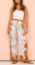 Zarif Kontrast Batik Çiçekli Bol Pantolon Takımı