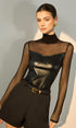 Suni Deri Panelli Şeffaf Tişört