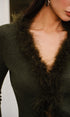 Tüy Detaylı Yün Karışımlı Dar Kesim Kazak