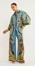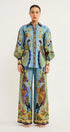 Doğadan ilham alan sanatsal desenleriyle Celestia takımı, sofistike zevklere hitap eden bir tasarım sunar. Gömleğin klasik yaka ve tam düğmeli formu, balon kollarla modernize edilirken, geniş paçalı pantolonuyla rahatlık ve şıklık bir araya gelir.