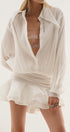 Pileli Fırfırlı Mini Elbise ile gardırobunuzu yükseltin. Derin V yakalı, sivri yakalı ve pilili düşük bel tasarıma sahip bu elbise, sofistike detayları eğlenceli unsurlarla birleştiriyor. Fırfır detayı feminen bir dokunuş katarken, mini boyu şık ve modern bir görünüm sunuyor.