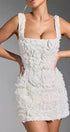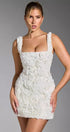 Beyaz Çiçek Aplikeli Korse Mini Elbise