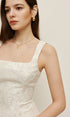 Çiçek Desenli Jakarlı Kare Yaka Elbise