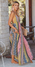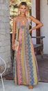 Freda Baskılı Çizgili Sırtı Açık Uzun Yaz Elbisesi