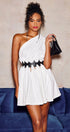 Cut-Out Tek Omuz Elbise ile cesur bir ifade yaratın. Çarpıcı bir kesim tasarımına ve deri bele sahip bu elbise, sıra dışı detayları tek omuzlu şık bir siluetle birleştiriyor. Geniş etek kısmı, şık kesime dramatik bir dokunuş katıyor.