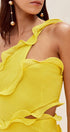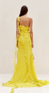 Gloria Tek Omuzlu Volanlı Uzun Şifon Elbise