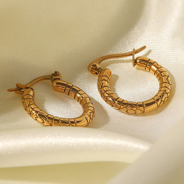 Altın Kaplama Titanyum Çelik Daire Dokulu Küpe