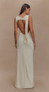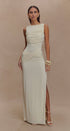 Drapeli Yüksek Yaka Uzun Elbise – Krem