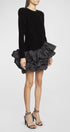Hermosa Ruffle Asimetrik Etek Mini Kadife Elbise
