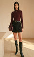 Yüksek Bel Yırtmaç Detaylı A Kesim Etek (Kemersiz)