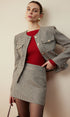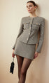 Kazayağı Desenli Düğmeli Kısa Ceket