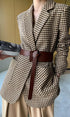 Kemerli Pencere Desenli Yırtmaçlı Blazer Ceket