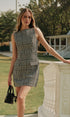 Kazayağı Desenli Tweed Fermuarlı Elbise