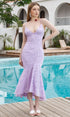Zarif çiçek dokusu, romantik lila tonuyla buluşuyor… Vücudu saran formu ve balık kesim eteğiyle feminen siluetinizi öne çıkaran bu elbise, özel yaz davetlerinin yıldızı olmaya aday.