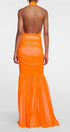 Çapraz yakalı ve ön kısmı cesur kesimli çarpıcı maksi elbisemizle kendinizi gösterin. Açık sırt ve balık kuyruğu etek kısmı dramatik bir zarafet katarken, naylon-elastan karışımı, rahatlık ve esneklik için orta düzeyde esnekliğe sahip, hoş bir uyum sağlar.