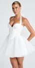 Büyüleyici bir zarafet, keskin bir siluetle buluşuyor. Keely Corset Mini Dress, balerin tütüsünü anımsatan tül eteği ve vücuda oturan korsaj üstüyle cesur bir romantizm sunuyor. İnce halter bağlama detayı ve göğüs kısmındaki fiyonkla zarafeti yeniden tanımlayan bu elbise, beklenmedik anlarda başrol oynaman için tasarlandı.
