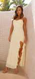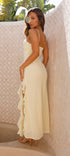 - Volan detayları, elbiseye feminen bir hava katarak göz alıcı bir görünüm sağlar.