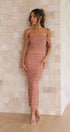 Sophia Maxi Elbise ile zahmetsiz şıklığı yaşayın. Bu çarpıcı maksimum uzunlukta elbise, yapısal ve hoş bir uyum sunan destekleyici kemikli askısız bir tasarıma sahiptir. Omuzları açıkta bırakan örgü kollar romantik bir çekicilik katıyor, arka bölme ise bir miktar çekicilik sağlıyor.