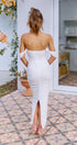 Sophia Maxi Elbiseyle zarafeti yansıtın. Bu çarpıcı elbise, yapısal bir uyum için kemikli, askısız bir tasarıma ve ruhani bir çekicilik dokunuşu için omuzları düşük örgü kollara sahiptir. Dantelli örgü tasarımı doku ve zarafet katarken, arka bölme dramatik bir dokunuş katıyor.