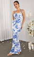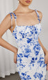 Bağcık Detaylı Askılı Çiçek Desenli Uzun Elbise