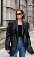 Lapel Detaylı Deri Blazer