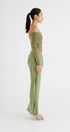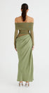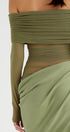 Şık kesimli tasarıma ve daha fazla zarafet için üst üste binen eteğe sahip, omuzları açık maksi elbisemizle tarzınızı ortaya çıkarın. Örgü korsaj, yüksek esnekliğe sahip, göz alıcı bir uyum sunarak hem zarafet hem de rahatlık sağlar.