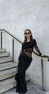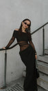 Lillian Omuz Açık Şeffaf Uzun File Elbise