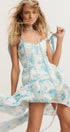 Liv Baskılı İşlemeli Dantel Katmanlı Mini Elbise