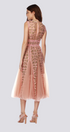 Bej Maëlle Yuvarlak Yaka File İşlemeli Midi Elbise