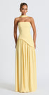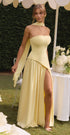 Minimal bir zarafeti güçlü bir silüetle buluşturan Maliyah, tek parçada göz alıcılığı garantiliyor. Straplez kesimiyle üst bedeni kusursuzca sararken, yırtmaçlı ve dökümlü etek detayıyla feminen bir etki yaratır. Bel kısmındaki asimetrik geçiş, vücut oranlarını dengeleyerek daha uzun bir görünüm sağlar. Davetlerden mezuniyetlere, özel akşamlardan nişanlara kadar uzanan geniş bir kullanım alanı sunar.