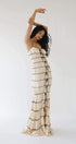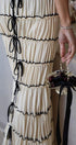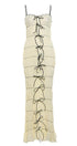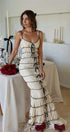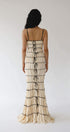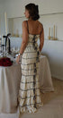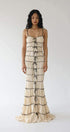 Bu zarif maksi elbise, katmanlı danteller ve ipek charmeuse fiyonklarla gardırobunuza lüks bir dokunuş katıyor. Çok esnek satenden üretilen bu ürün, kıvrımlarınızı vurgulayan ve maksimum konfor sağlayan mükemmel bir uyum sunar. Yan taraftaki görünmez fermuar, elbisenin zarif akışını koruyarak dikişsiz bir kapatma sağlar.