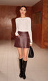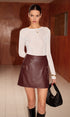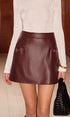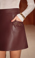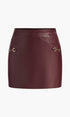 Metal Detaylı Suni Deri Cepli Mini Etek