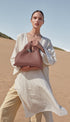 “Miona El Çantası”, esneklik ve tutuş arasında doğru dengeyi sağlayan organik bir tasarıma sahiptir. Dökme derisi, el dikişi ile sabitlenmiştir.