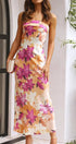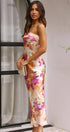 Miya Uzun Elbise - Turuncu/Pembe Baskı
