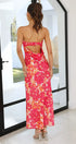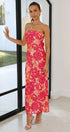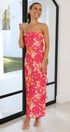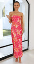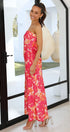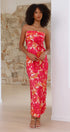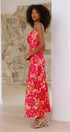 Miya Uzun Elbise - Pembe/Kırmızı Çiçekli