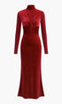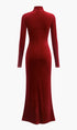 Yarım Boğazlı Düğümlü Kadife Elbise