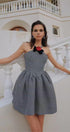 Mona Kaz Ayağı Gül Fiyonklu A Kesim Mini Elbise