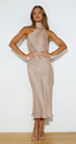 Nad Cowl Halter Yaka Saten Midi Elbise