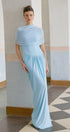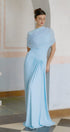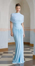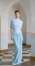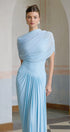 💙 Mavi Asimetrik Pileli Maxi Elbise