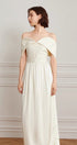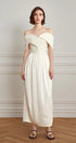 Omuz Açık Eğri Uzun Elbise Krem