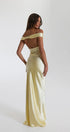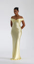 Sizi ilgi odağı haline getirmek için tasarlanan bu seksi, düşük omuzlu gece elbisesiyle bakışları üzerinize çekin. Zarif düşük omuzlu yaka dekoltenizi öne çıkarırken vücudu saran silüet ve yan yırtmaç cesur ve göz alıcı bir görünüm yaratıyor. Çizgili detaylar sofistike bir dokunuş katarak onu kokteyl partileri, resmi etkinlikler ve akşam toplantıları için mükemmel kılıyor.