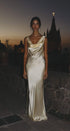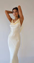 Persis Cowls Sırtı Açık Saten Uzun Elbise