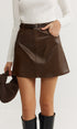 Düz Suni Deri Kemerli Etek