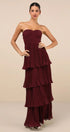 Erik Moru Straplez Katmanlı Uzun Elbise