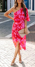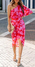 Rilee Tek Omuz Midi Elbisesiyle yanınızdan geçtiğinizde bakmayı bırakamayacaklar! Bu muhteşem siluet, yumuşak dantelli ve dökümlü bir tasarım üzerinde kırmızı ve macenta çiçek baskısına sahiptir. Tek omuzlu ve kollu yakalı, yapılandırılmış belli ve üst üste binen midi etekli.