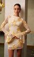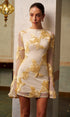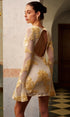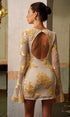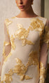 Romantik Çiçekli Sırt Dekolteli File Elbise